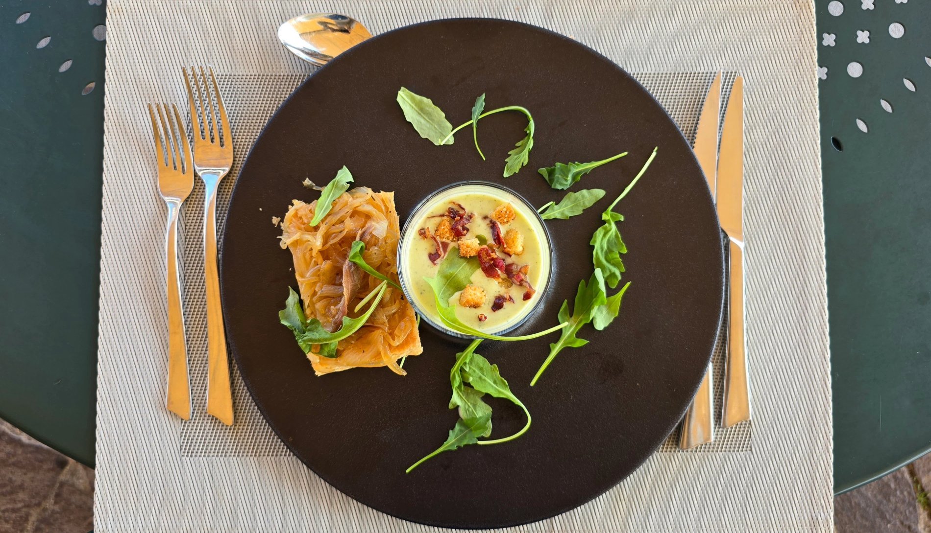 Our Restaurant welcomes you with a Mediterranean-style dining room and terrace offering breath-taking panoramic views over the golf course.