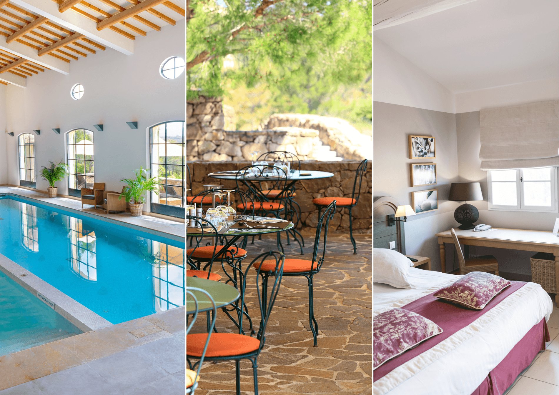 - Piscines intérieures et extérieures, parfois chauffées, pour prolonger la détente.