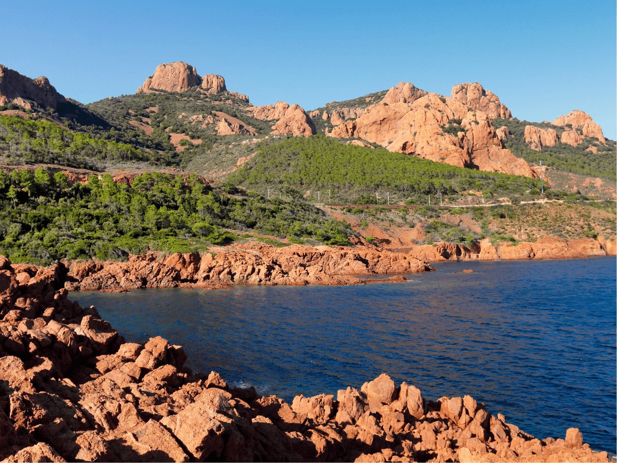 - Le massif de l'Estérel et sa Corniche d'Or, spectaculaires falaises de porphyre rouge plongeant dans la Méditerranée