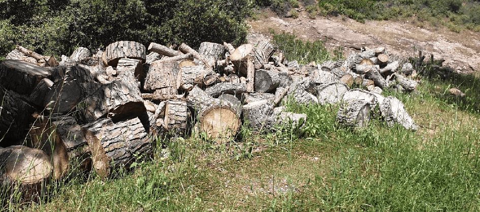 - Installation d'abris à reptiles : tas de bois issu de coupe